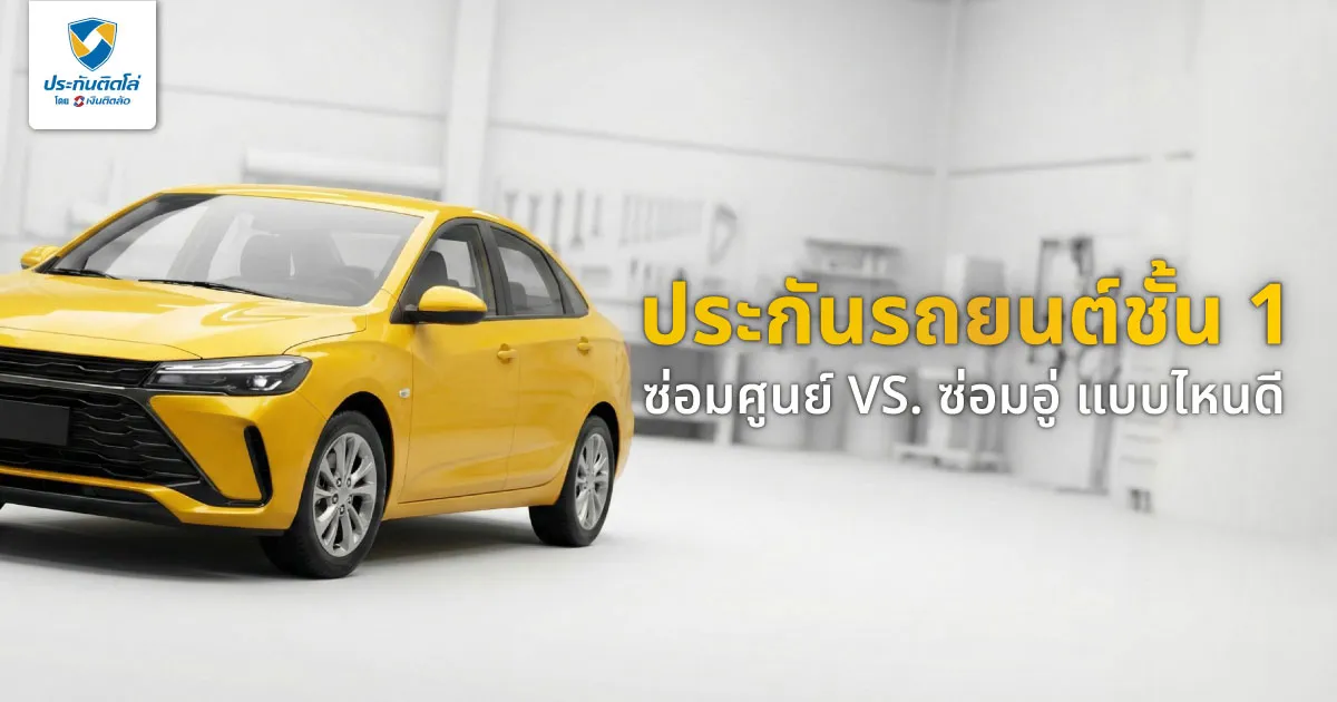 ประกันรถยนต์ชั้น 1 ซ่อมศูนย์และซ่อมอู่ต่างกัน ทั้งด้านคุณภาพงานซ่อม ความเร็ว ค่าเบี้ย และความเหมาะสมตามอายุรถ รถใหม่หรือรถที่ยังมีมูลค่าสูงเหมาะกับซ่อมศูนย์เพราะใช้อะไหล่แท้และมาตรฐานสูง ส่วนรถที่อายุเพิ่มขึ้นเหมาะกับซ่อมอู่เพื่อลดค่าเบี้ยและได้งานซ่อมที่คุ้มค่า นอกจากนี้ อายุรถยังเป็นตัวช่วยในการเลือกประเภทประกัน เช่น รถป้ายแดงเหมาะกับชั้น 1 ขณะที่รถเก่ามากๆ เหมาะกับชั้น 2+ หรือ 3+ เพื่อควบคุมค่าใช้จ่ายแต่ยังมีความคุ้มครองกรณีชน