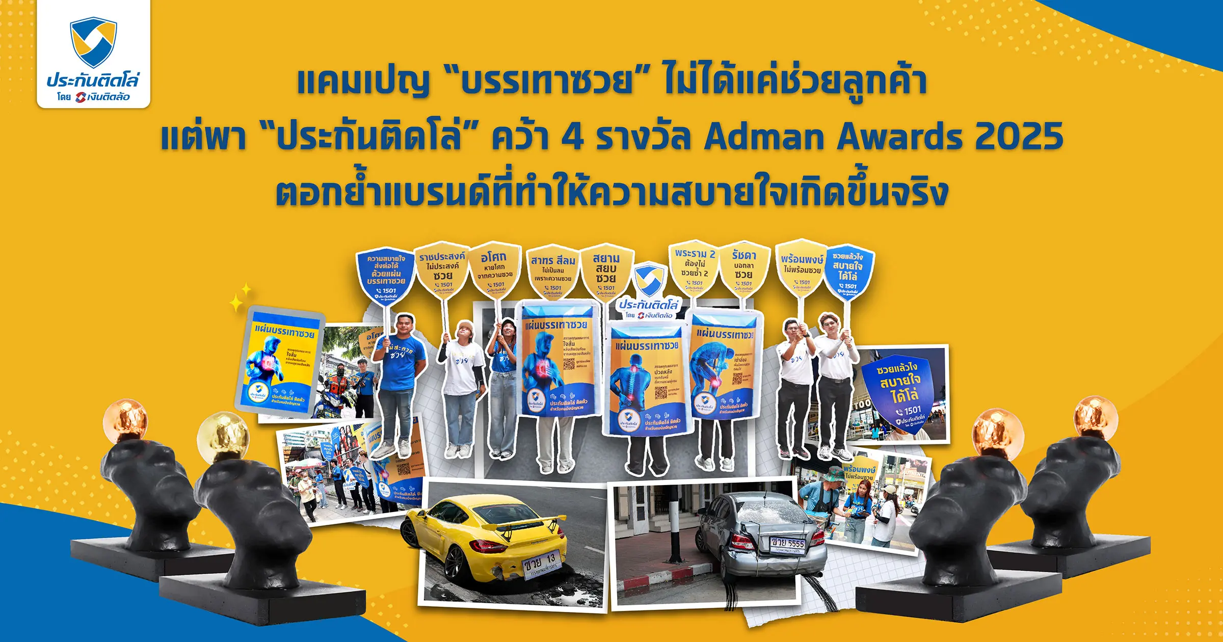 - “ประกันติดโล่” คว้า 4 รางวัล Adman Awards 2025 จากแคมเปญ “บรรเทาซวย” ด้วยชิ้นงานสร้างสรรค์ “แผ่นบรรเทาซวย” และ “ป้ายทะเบียนซวย”