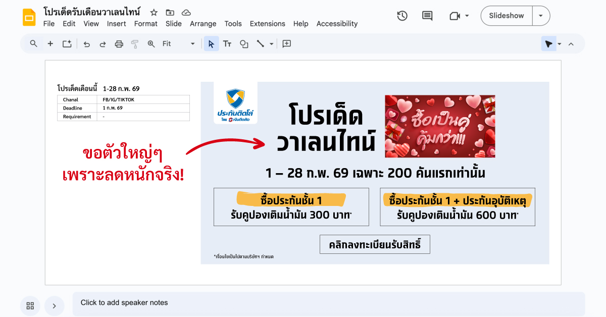 ลงทะเบียนรับสิทธิ์ ตั้งแต่วันที่ 1-28 กุมภาพันธ์ 2569 รับคูปองเติมน้ำมัน บางจาก สูงสุด 600 บาท* สำหรับลูกค้าที่ซื้อประกันชั้น 1 ภายในเดือน (จำกัดจำนวน 200 Books แรกต่อเดือนเท่านั้น)